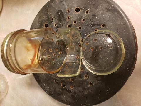 Had a slight mishap the other day when one of the jars broke in the canner. I made the mistake of forgetting to put the rack in the canner before putting in the jars (so the jars were directly on the bottom of the canner). Just a case of too much heat being applied too quickly! Luckily there were no injuries and it was just tomato sauce, if it were something like maple syrup that takes several days to produce I would have been more upset!