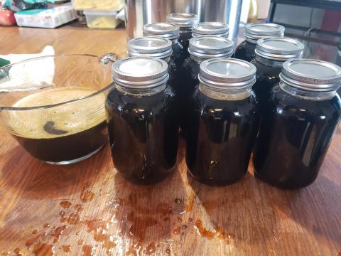 I spent the last few days concentrating really hard and end up with 3.75 gallons of Maple Syrup! Trees were tapped on March 13, 2022 and it took a few days before there was any flow, started out slowly but has been between 16-20 gallons per day the last few days!