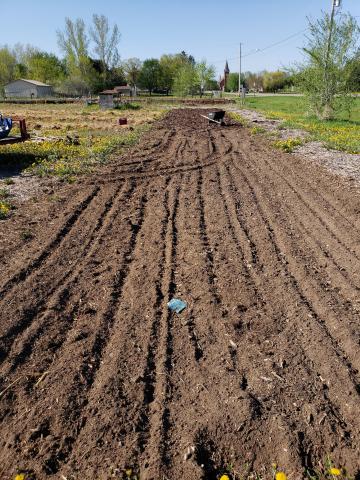 This is the second year with this garden and while it produced an okay crop I wanted to take the extra time to improve the soil! This is a long and narrow garden! My plan this year is to plant grain sorghum (for making gluten free flour), chick peas (also for making gluten free flour), sun flowers, and sugar beets (I thought it would be fun to try to make my own sugar).