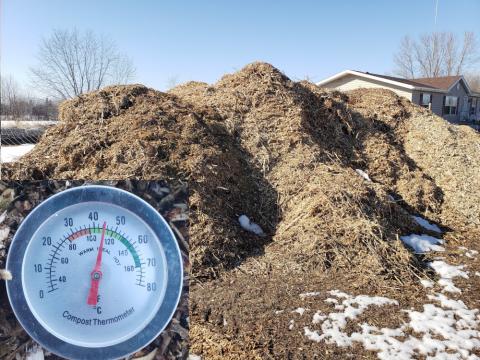 Here is something that amazed me. Compost piles or in this case a wood chip pile can remain active during the winter. Just three weeks ago we had -25 F temps here but part of the pile is 110 F today! I am sure deeper inside this pile there are even hotter temps!