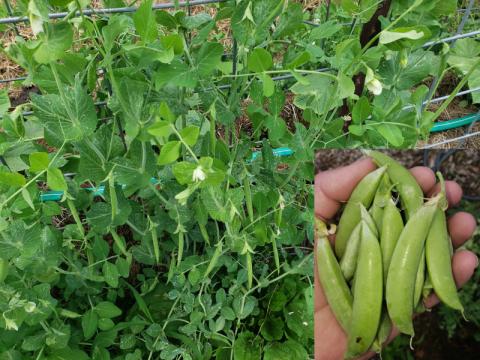 The pea experiment worked! and The Rabbit Boundary also worked! The peas are beginning to produce and we ate our first garden produce today!
