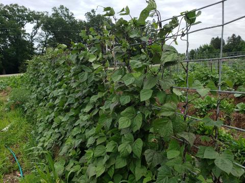The plants are super healthy when many flowers! The beans definitely loved the cattle panel I put up for them to crawl up! Soon, very soon, I will be able to eat them!